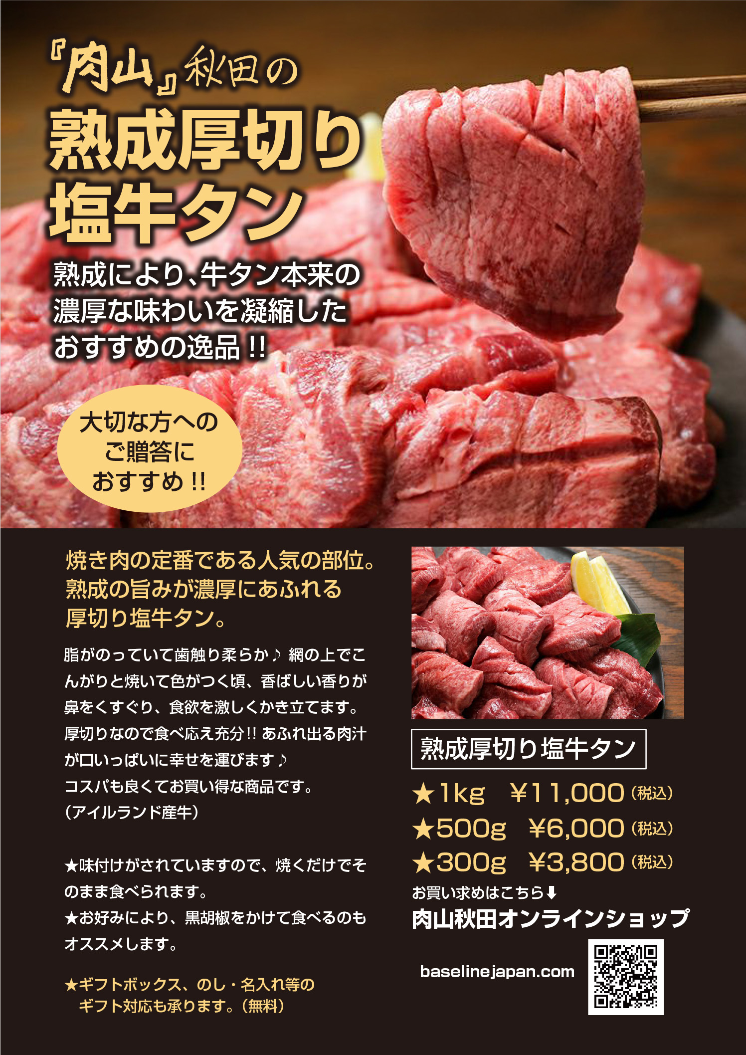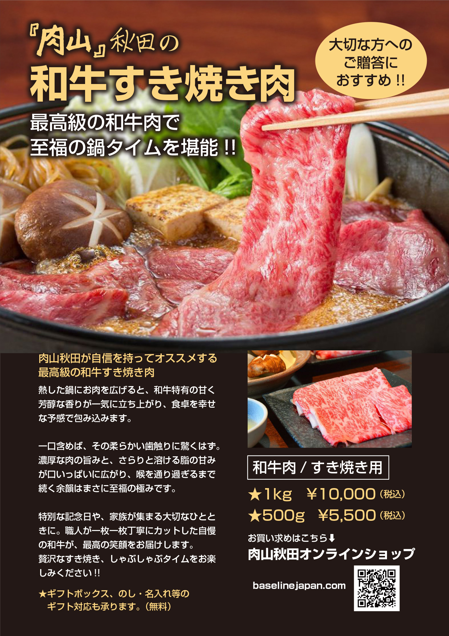 弊社が運営するECサイト「肉山秋田オンラインショップ」では、旨みたっぷりの牛肉を取り揃えておりますが、この度ご贈答用の「和牛すき焼き肉」と「熟成厚切り塩牛タン」をご用意しました。
