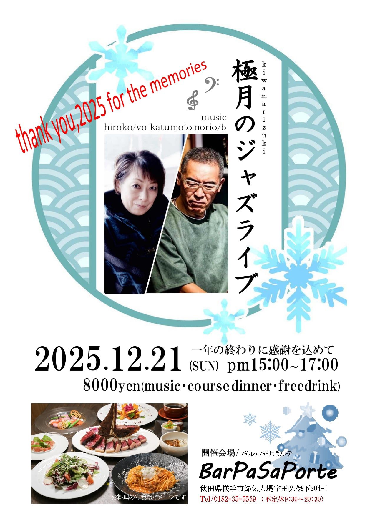 皆様への一年の感謝の気持ちを込めて、極上のジャズライブ&ディナー会をレストラン BarPaSaPorteで開催します😊