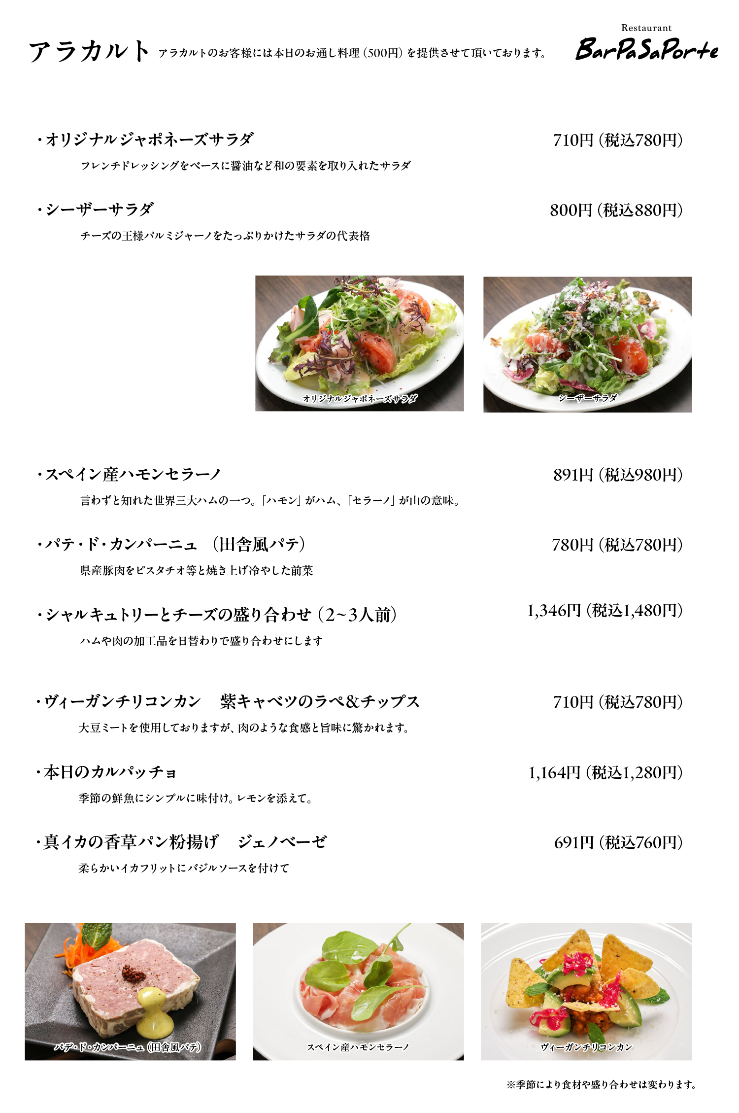 | ・ | お一人様 500円 |